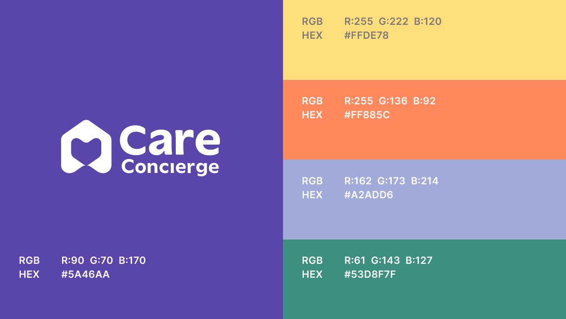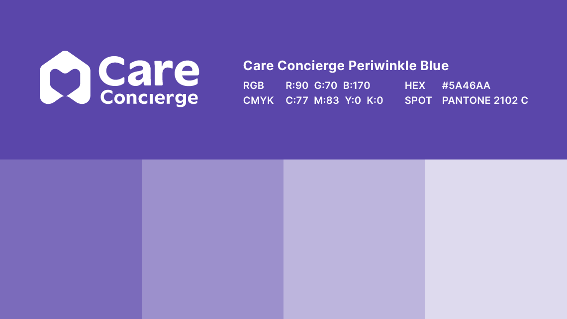 The main corporate colour is Care Concierge Periwinkle Blue