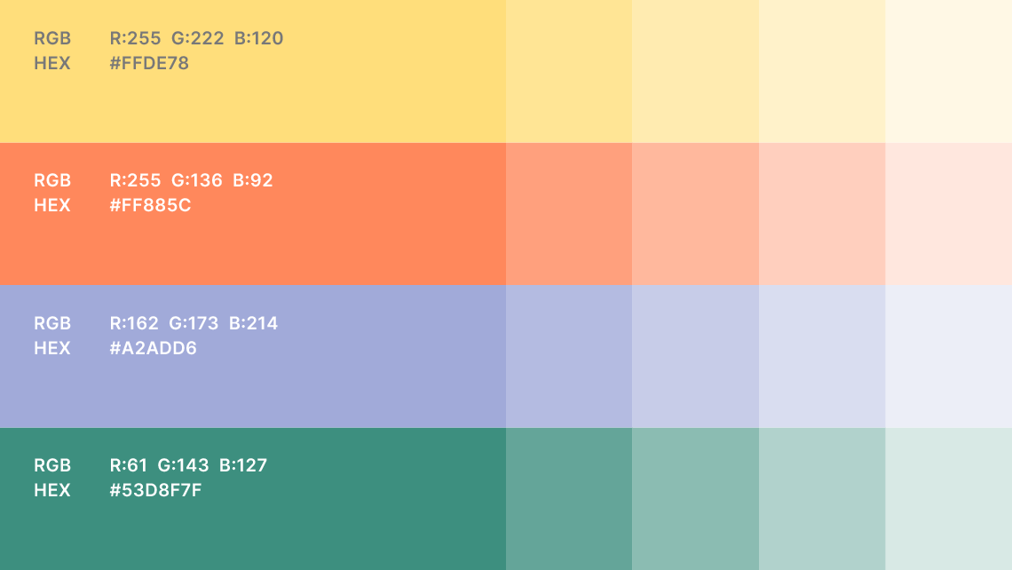 There are 4 secondary colours chosen to complement the main colour.